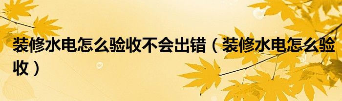 装修水电怎么验收不会出错(装修水电怎么验收)