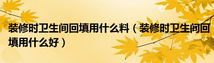装修时卫生间回填用什么料(装修时卫生间回填用什么好)