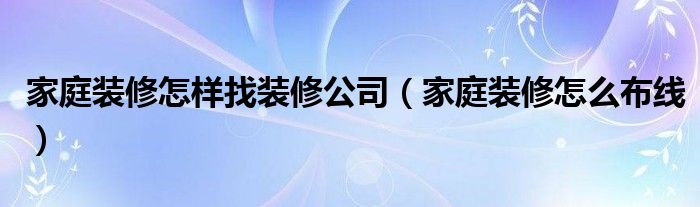 家庭装修怎样找装修公司(家庭装修怎么布线)