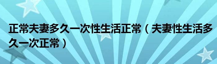 正常夫妻多久一次性生活正常(夫妻性生活多久一次正常)
