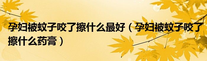 孕妇被蚊子咬了擦什么最好(孕妇被蚊子咬了擦什么药膏)