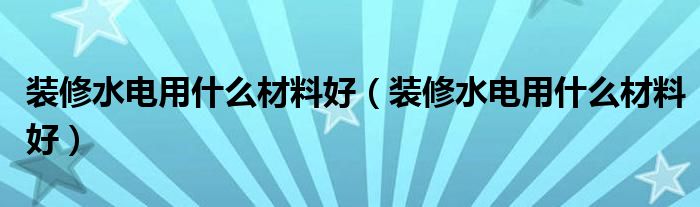 装修水电用什么材料好(装修水电用什么材料好)