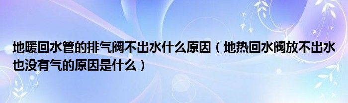 地暖回水管的排气阀不出水什么原因(地热回水阀放不出水也没有气的原因是什么)