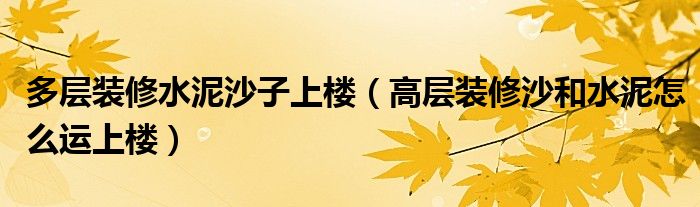 多层装修水泥沙子上楼(高层装修沙和水泥怎么运上楼)