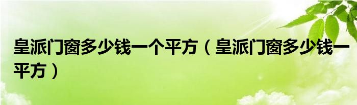 皇派门窗多少钱一个平方(皇派门窗多少钱一平方)