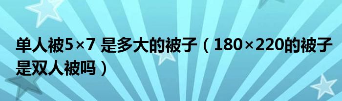 大家好,啊来为大家解答以上的问题。单人被5×7 是多大的被子,180×220的被子是双人被吗这个很多人还不知道,现在让我们一起来看看吧!