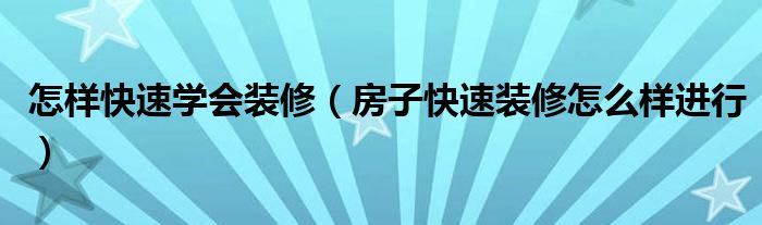 大家好,啊来为大家解答以上的问题。怎样快速学会装修,房子快速装修怎么样进行这个很多人还不知道,现在让我们一起来看看吧!