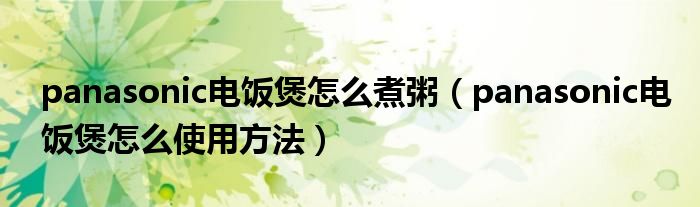panasonic电饭煲怎么煮粥(panasonic电饭煲怎么使用方法)