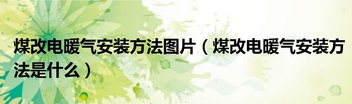煤改电暖气安装方法是:一、准备工具,包括电暖片,控温器,接水阀门,管道,扳手,防水胶带,膨胀螺丝,冲击钻等;二、确定位置,靠近窗户,沙发后面,打膨胀螺丝,深度在3-5厘米,固定暖气片,控温阀,然后安装阀门,主要是进水、排水阀门,接下来做闭水试验,查看暖气片和控温阀是否出现漏水等。