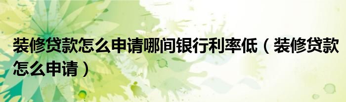 装修贷款怎么申请哪间银行利率低(装修贷款怎么申请)