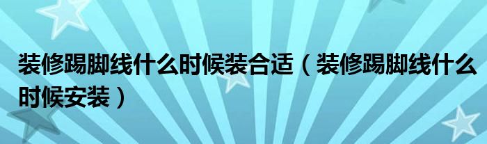 装修踢脚线什么时候装合适(装修踢脚线什么时候安装)