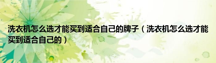 洗衣机怎么选才能买到适合自己的牌子(洗衣机怎么选才能买到适合自己的)