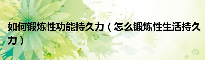 如何锻炼性功能持久力(怎么锻炼性生活持久力)