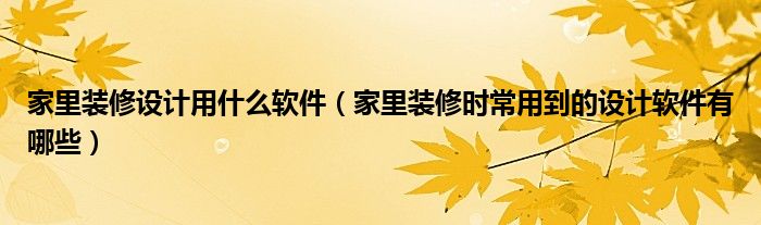 家里装修设计用什么软件(家里装修时常用到的设计软件有哪些)