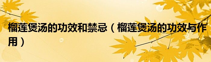 榴莲煲汤的功效和禁忌(榴莲煲汤的功效与作用)