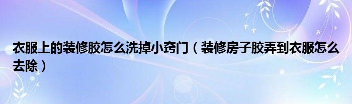 衣服上的装修胶怎么洗掉小窍门(装修房子胶弄到衣服怎么去除)