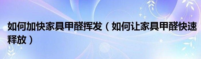 如何加快家具甲醛挥发(如何让家具甲醛快速释放)