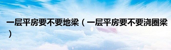 一层平房要不要地梁(一层平房要不要浇圈梁)