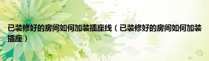 已装修好的房间如何加装插座线(已装修好的房间如何加装插座)