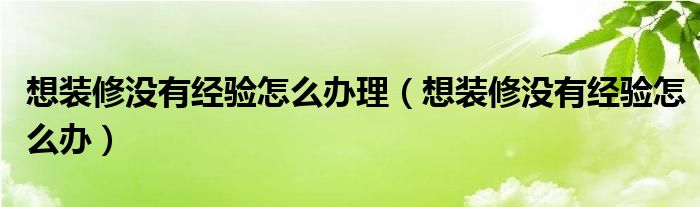 想装修没有经验怎么办理(想装修没有经验怎么办)