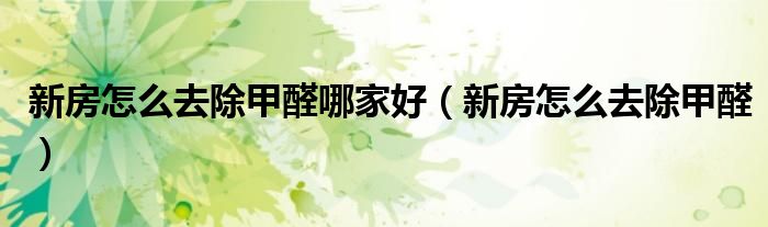 新房怎么去除甲醛哪家好(新房怎么去除甲醛)