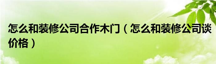 怎么和装修公司合作木门(怎么和装修公司谈价格)
