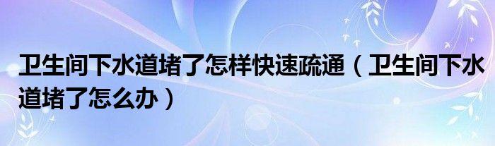 卫生间下水道堵了怎样快速疏通(卫生间下水道堵了怎么办)