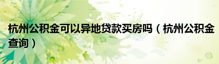 杭州公积金可以异地贷款买房吗(杭州公积金查询)