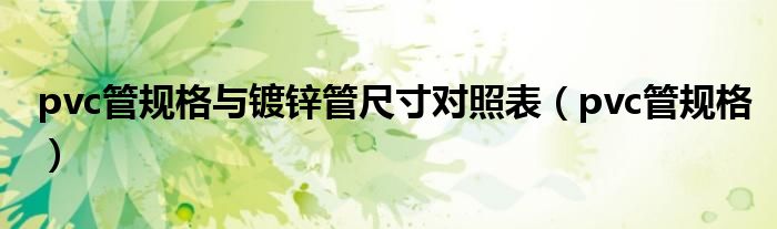 pvc管规格与镀锌管尺寸对照表(pvc管规格)