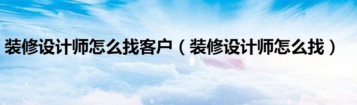 装修设计师怎么找客户(装修设计师怎么找)