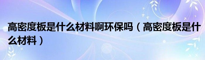 高密度板是什么材料啊环保吗(高密度板是什么材料)