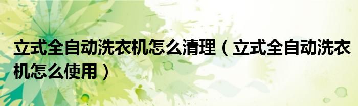 立式全自动洗衣机怎么清理(立式全自动洗衣机怎么使用)