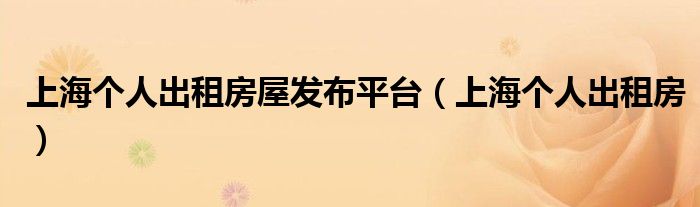 大家好,甜甜来为大家解答以上问题,上海个人出租房屋发布平台,上海个人出租房很多人还不知道,现在让我们一起来看看吧!