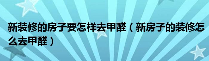新装修的房子要怎样去甲醛(新房子的装修怎么去甲醛)