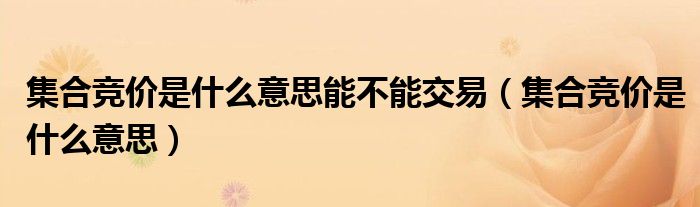 集合竞价是什么意思能不能交易(集合竞价是什么意思)