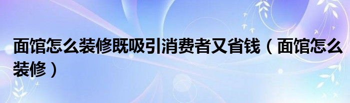 面馆怎么装修既吸引消费者又省钱(面馆怎么装修)