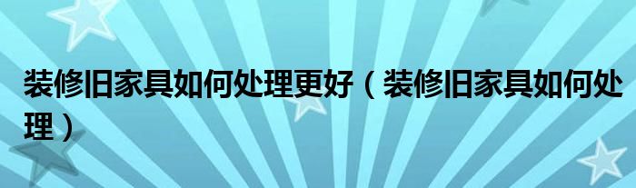 装修旧家具如何处理更好(装修旧家具如何处理)