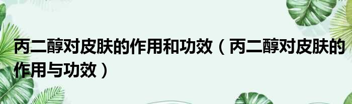 丙二醇对皮肤的作用和功效(丙二醇对皮肤的作用与功效)