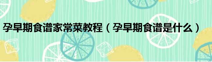 孕早期食谱家常菜教程(孕早期食谱是什么)
