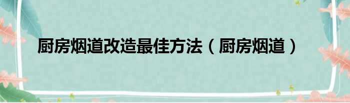 大家好,甜甜来为大家解答以上问题,厨房烟道改造最佳方法,厨房烟道很多人还不知道,现在让我们一起来看看吧!