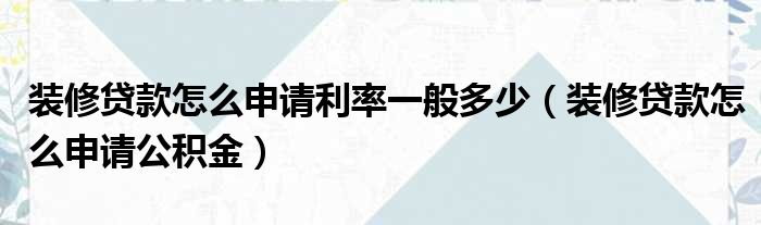 装修贷款怎么申请利率一般多少(装修贷款怎么申请公积金)
