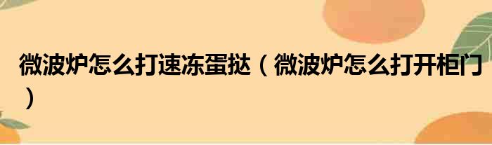 微波炉怎么打速冻蛋挞(微波炉怎么打开柜门)
