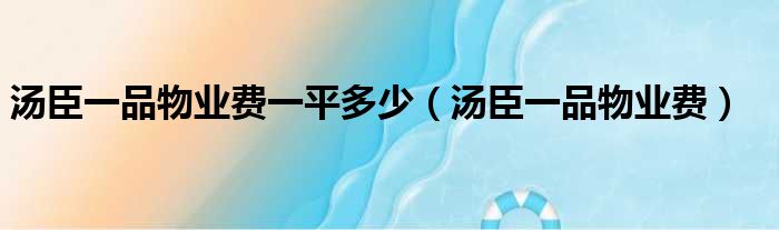 汤臣一品物业费一平多少(汤臣一品物业费)