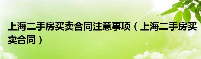 上海二手房买卖合同注意事项(上海二手房买卖合同)