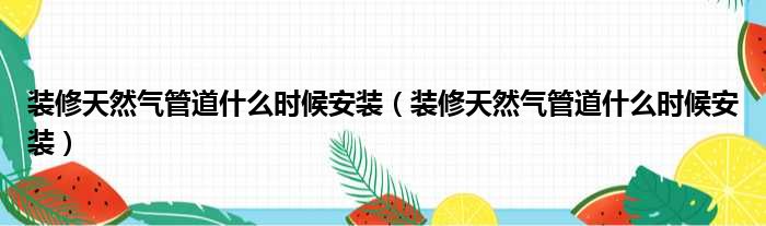装修天然气管道什么时候安装(装修天然气管道什么时候安装)