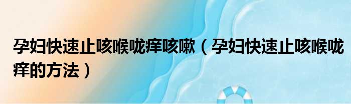 孕妇快速止咳喉咙痒咳嗽(孕妇快速止咳喉咙痒的方法)
