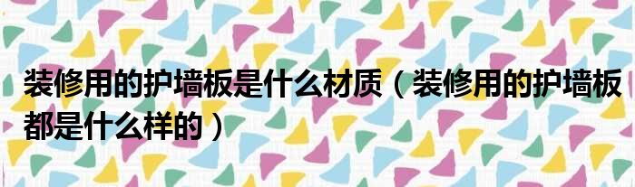 装修用的护墙板是什么材质(装修用的护墙板都是什么样的)