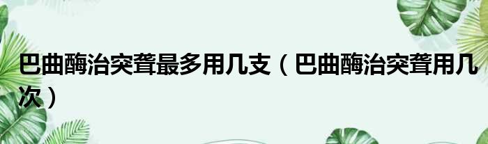 巴曲酶治突聋最多用几支(巴曲酶治突聋用几次)