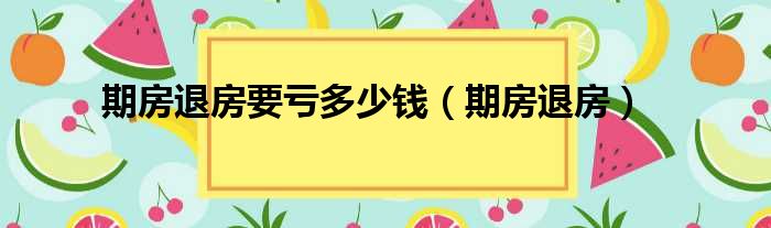 大家好,甜甜来为大家解答以上问题,期房退房要亏多少钱,期房退房很多人还不知道,现在让我们一起来看看吧!