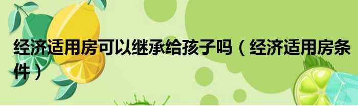 经济适用房可以继承给孩子吗(经济适用房条件)